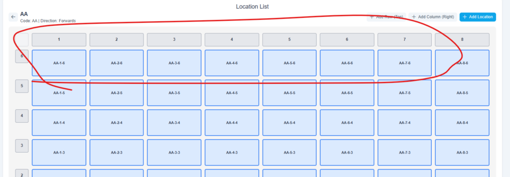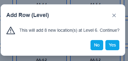 Add Row (Top) – Adds a new Level at the top of all existing locations. Users will see a notification before committing to creating a new level: